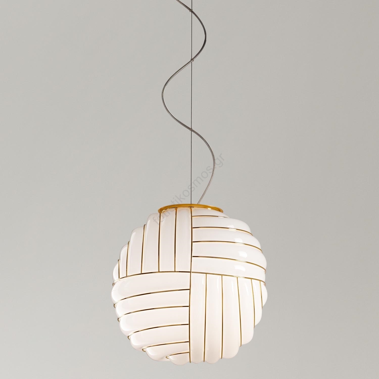 SIRU - Κρεμαστό φωτιστικό οροφής CARTESIO 1xE27/60W/230V χρυσαφί/λευκό Venetian Γυαλί | Fotisti kosm