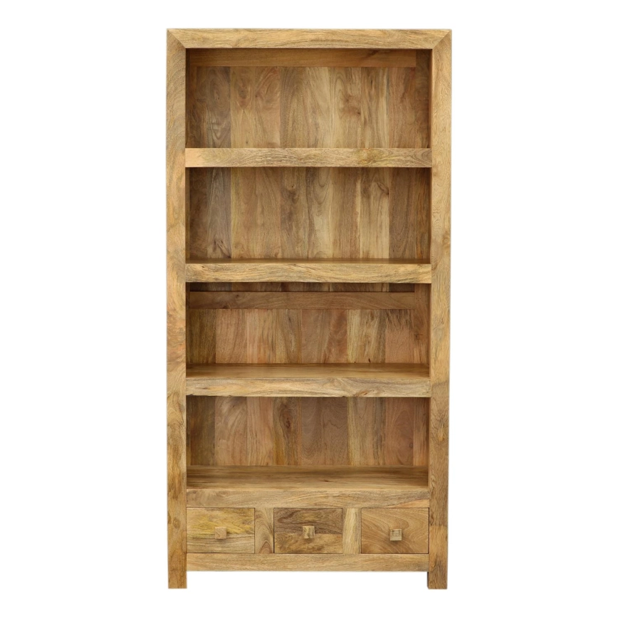 • Στιβαρή βιβλιοθήκη από μασίφ ξύλο ινδικού μάνγκο με πρακτικά συρτάρια.