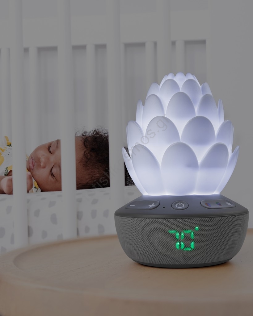 • 8 ήχοι και μελωδίες: Sleepy, Lullaby, Dreamer, Cozy, Pink Noise, Waves, Ambient, Rainforest.
