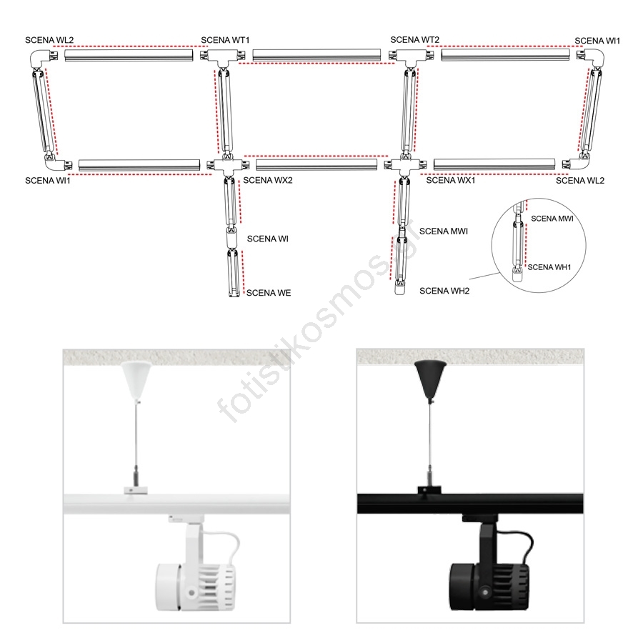 • Σύνδεσμος με σύνδεση για τριφασική ράγα SCENA.