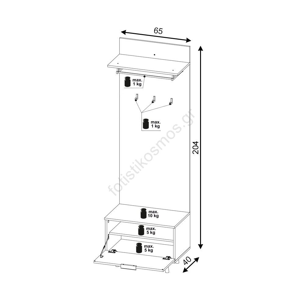 • Κάτω από αυτή βρίσκεται κλειστό διαμέρισμα για παπούτσια, αξεσουάρ ή άλλα καθημερινά απαραίτητα.