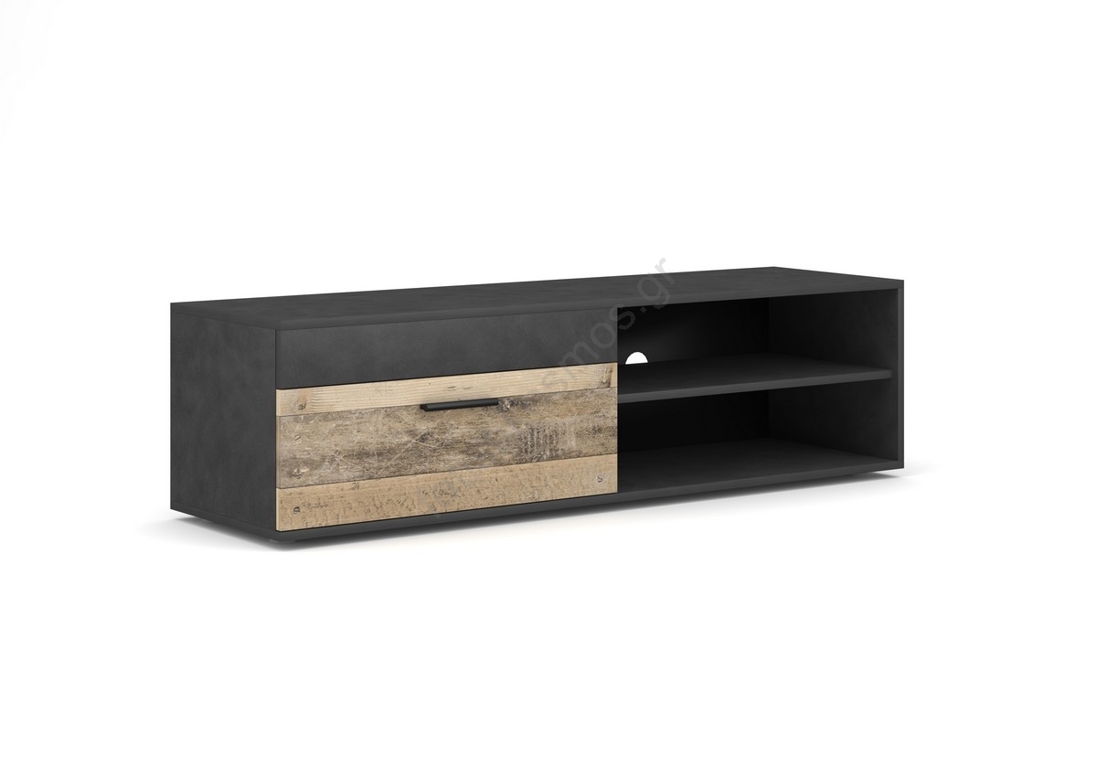 • Στην σύνθεση περιλαμβάνεται ένα ευρύχωρο έπιπλο τηλεόρασης με ανοικτά ράφια για συσκευές πολυμέσων και κλειστές θήκες για διακριτική αποθήκευση.
