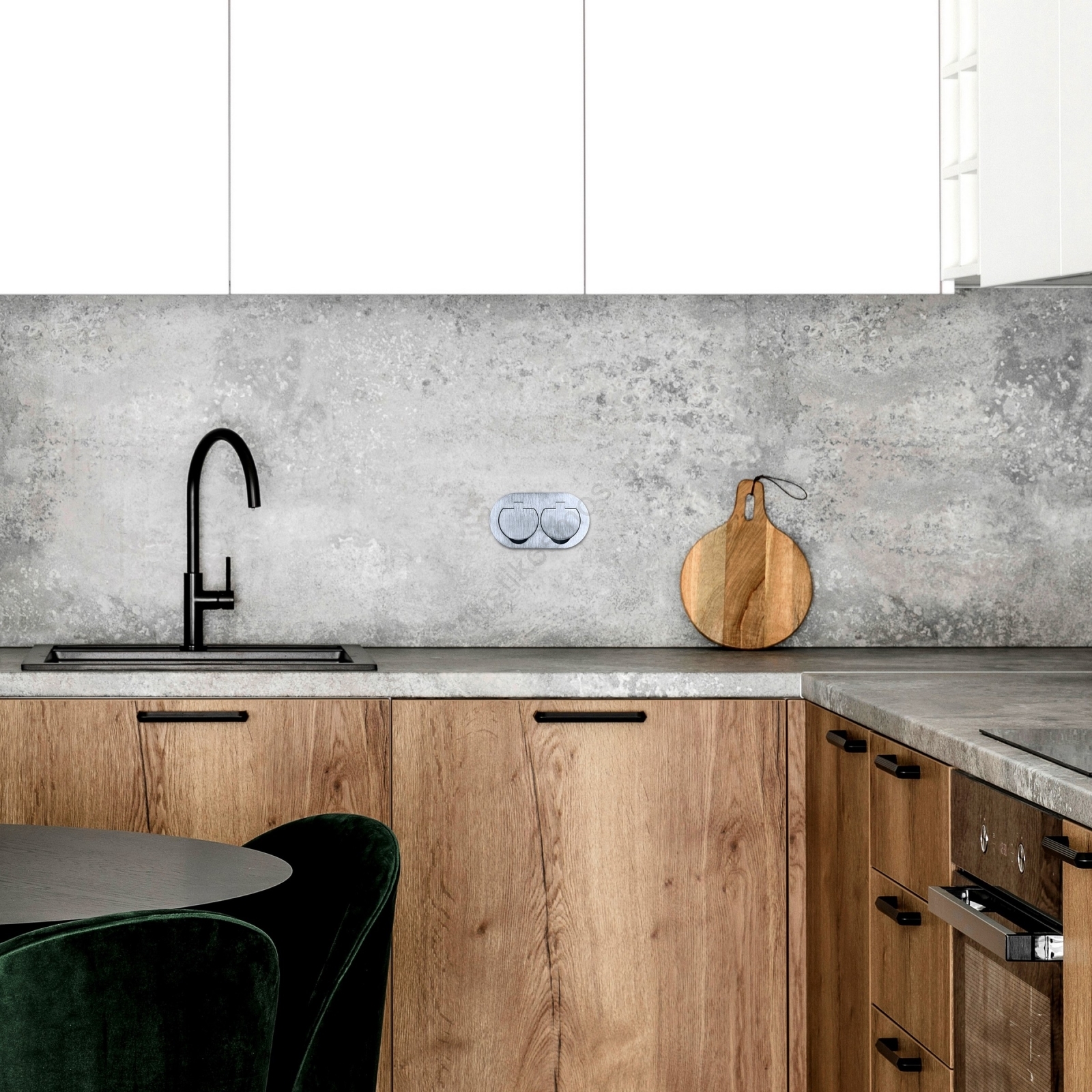• Πρακτική εντοιχισμένη διπλή πρίζα δαπέδου με γείωση (2P+E).