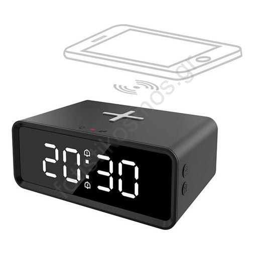 Ψηφιακό ρολόι με ασύρματη φόρτιση Qi 230V/CR2032 μαύρο