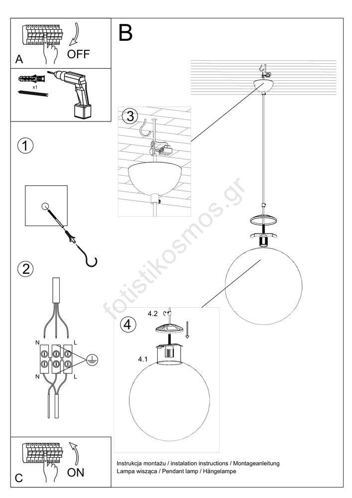 Sollux SL.0715 - Πολύφωτο TOYA 1xE27/60W/230V δ. 20 cm | Fotisti kosmos