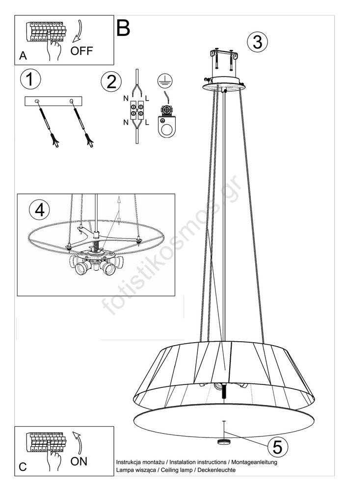 Sollux SL.0766 - Πολύφωτο κρεμαστό VEGA 5xE27/60W/230V δ. 60 cm μαύρο | Fotisti kosmos