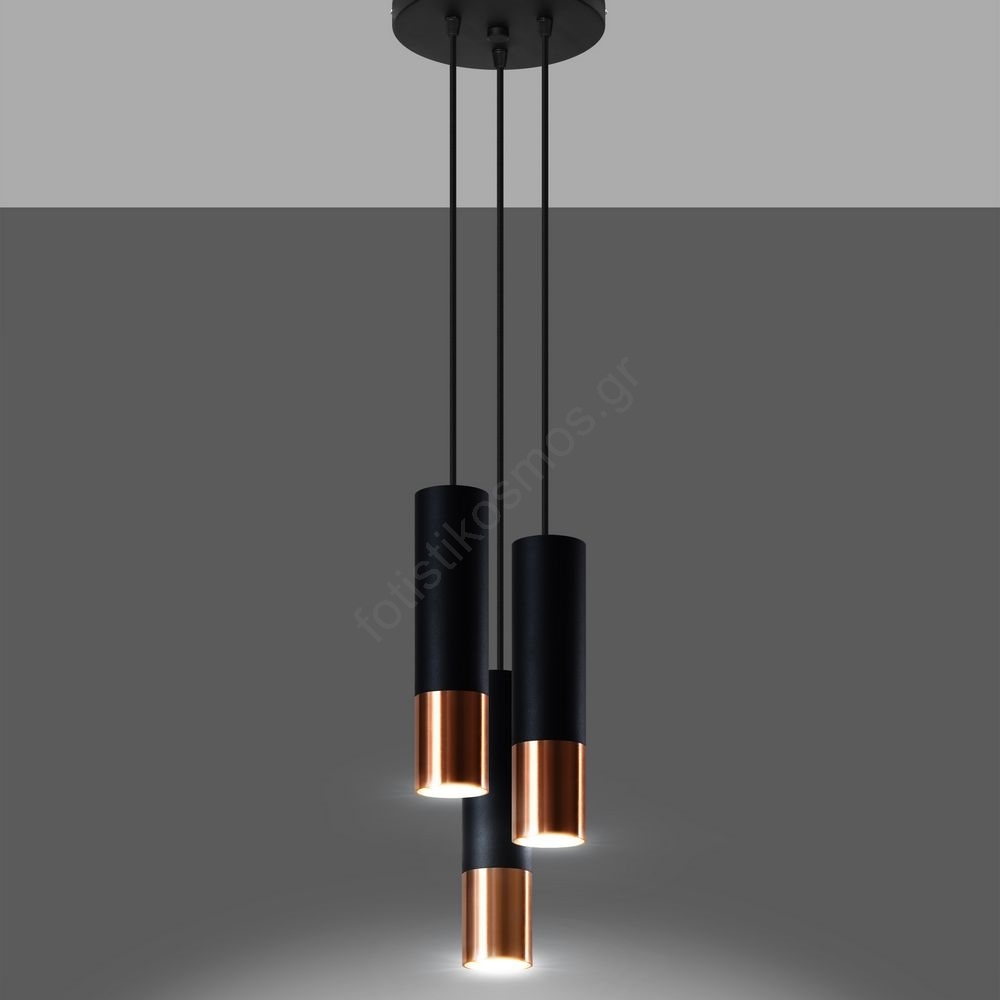 Sollux SL.0949 - Κρεμαστό φωτιστικό οροφής LOOPEZ 3xGU10/10W/230V στρογγυλό μαύρο/χαλκός | Fotisti k