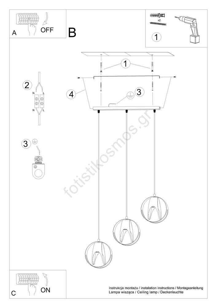 Sollux SL.1085 - Πολύφωτο κρεμαστό ράγα TULOS 3xE27/60W/230V λευκό | Fotisti kosmos
