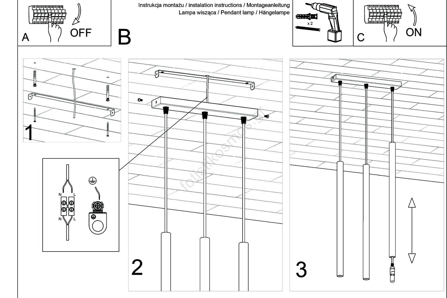 • Κρεμαστό φωτιστικό οροφής PASTELO 3xG9/8W/230V μαύρο