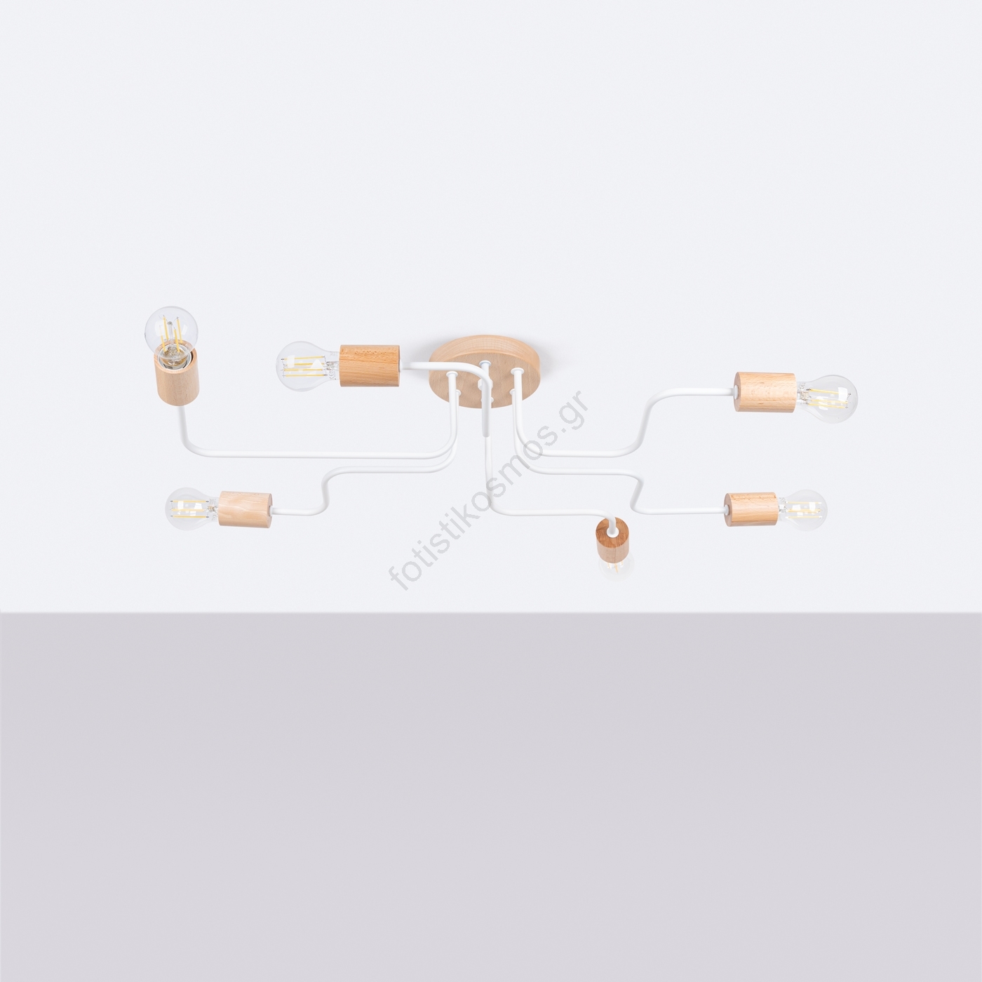 Sollux SL.1666 - Πλαφονιέρα οροφής TIMBO 6xE27/15W/230V λευκό/μπεζ/οξιά | Fotisti kosmos