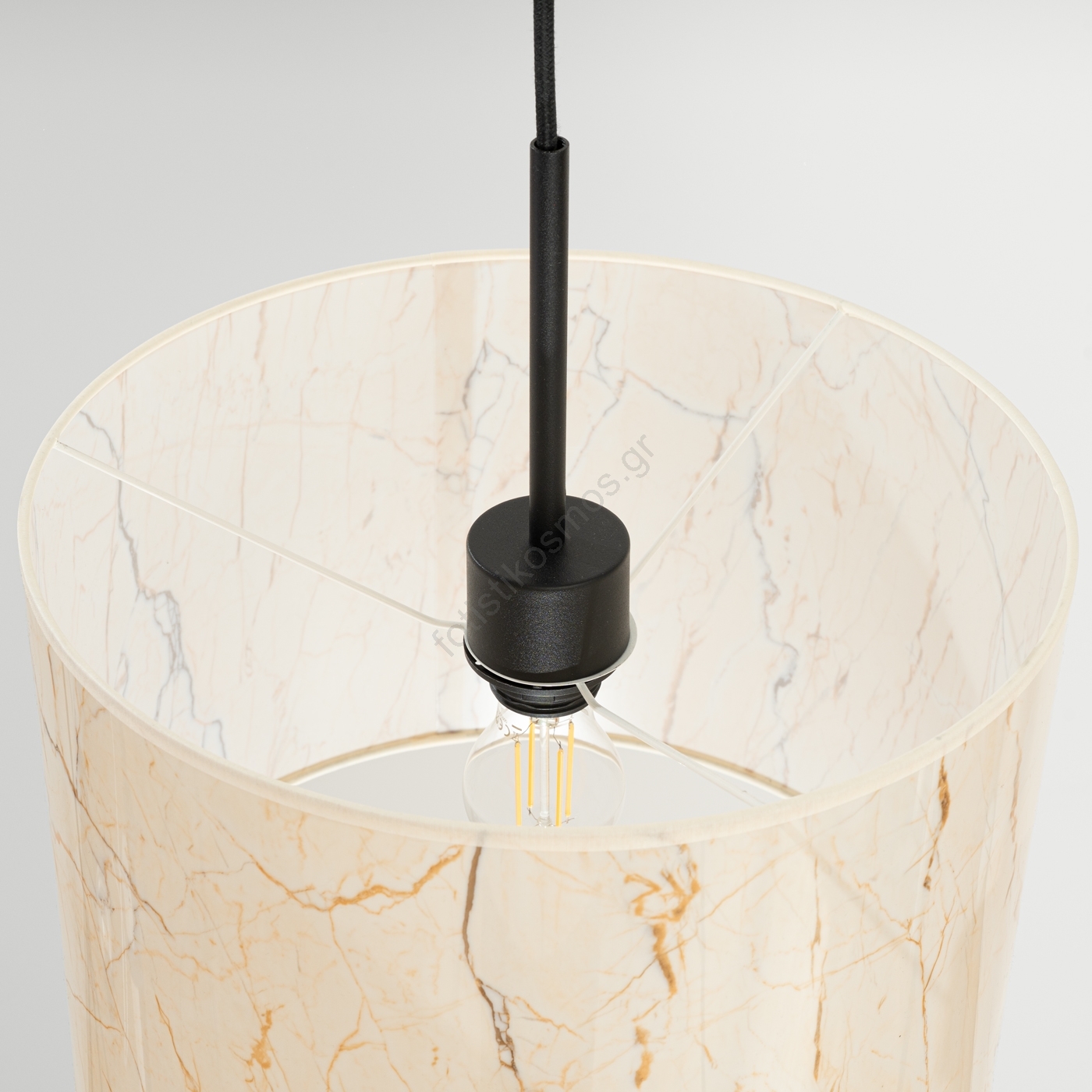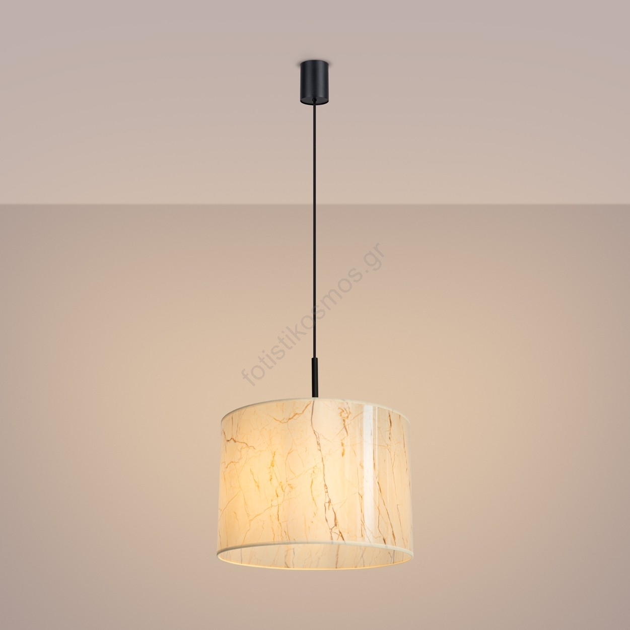 • Κρεμαστό φωτιστικό με καλώδιο NEVIA 1xE27/15W/230V διάμ. 40 cm μπεζ/μαρμάρινο ντεκόρ