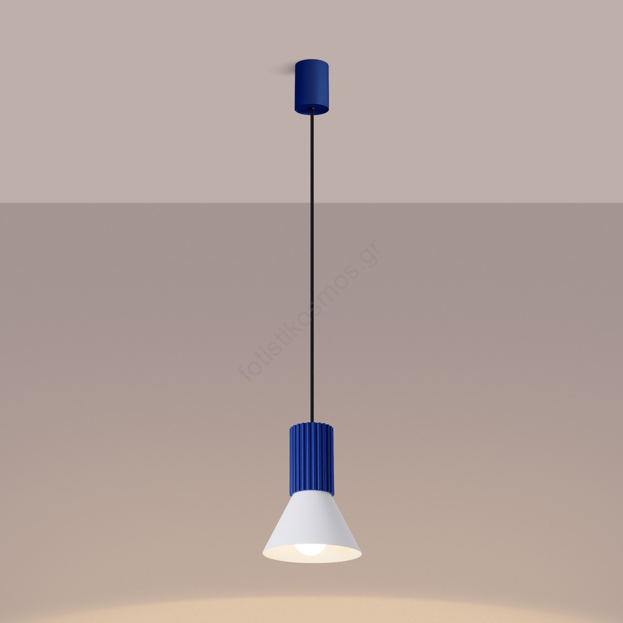 Κρεμαστό φωτιστικό με καλώδιο ESTRIA 1xE14/10W/230V, διάμετρος 14 cm, μπλε