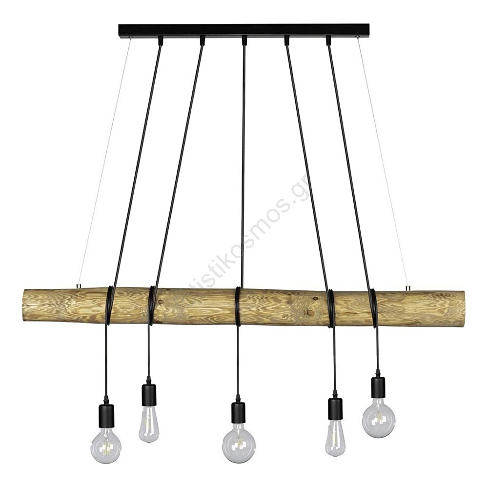 Φωτιστικό οροφής με καλώδιο TRABO 5xE27/60W/230V πεύκο