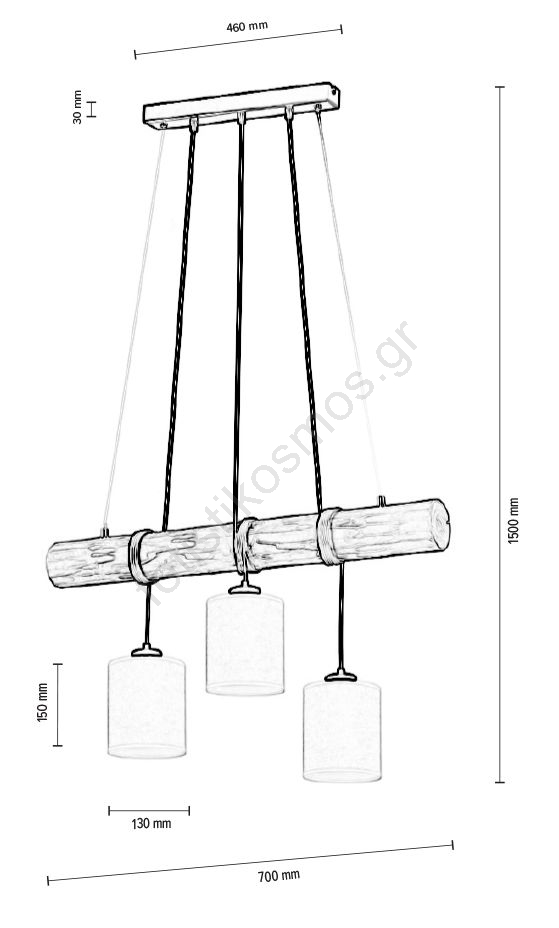 Κρεμαστό φωτιστικό με καλώδιο TRENO 3xE27/25W/230V, από πεύκο