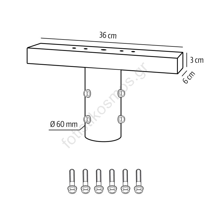 Βραχίονας στήριξης για φωτιστικά εξωτερικού χώρου BASE Ø 60 mm, μαύρο | Fotisti kosmos