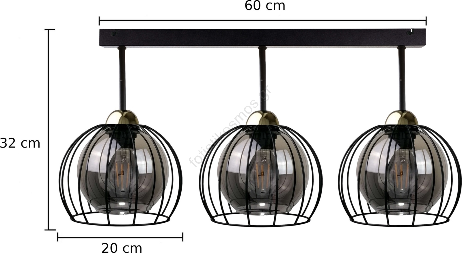 Σταθερό πολύφωτο SOLO BLACK 3xE27/60W/230V μαύρο/χρυσαφί | Fotisti kosmos