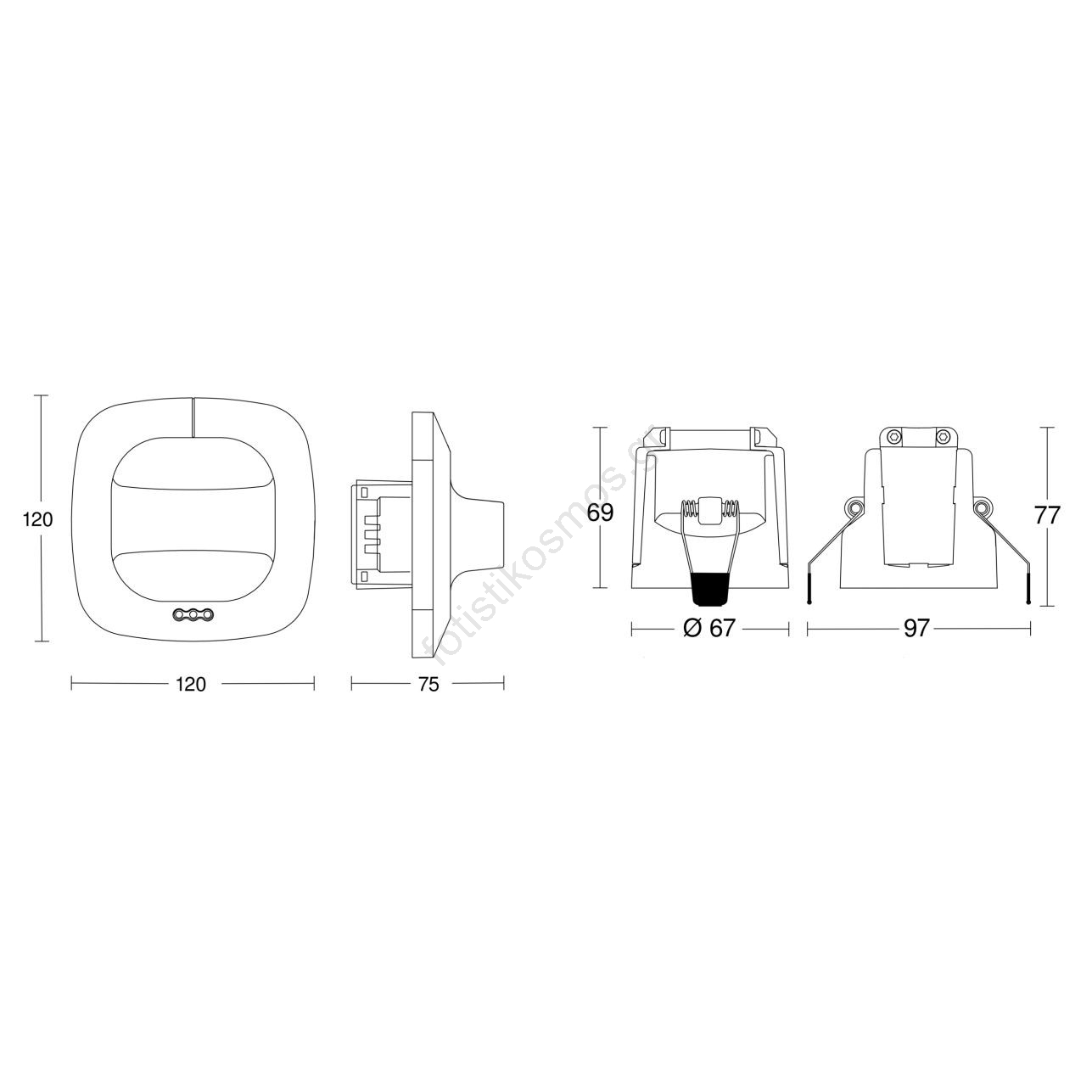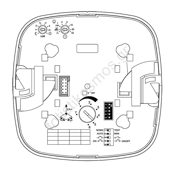 • Ρύθμιση Lux: 10 - 1000 lx.