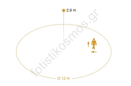 • Συνιστώμενο ύψος εγκατάστασης: 2,5 μ - 3,5 μ (βέλτιστο ύψος εγκατάστασης: 2,8 μ).
