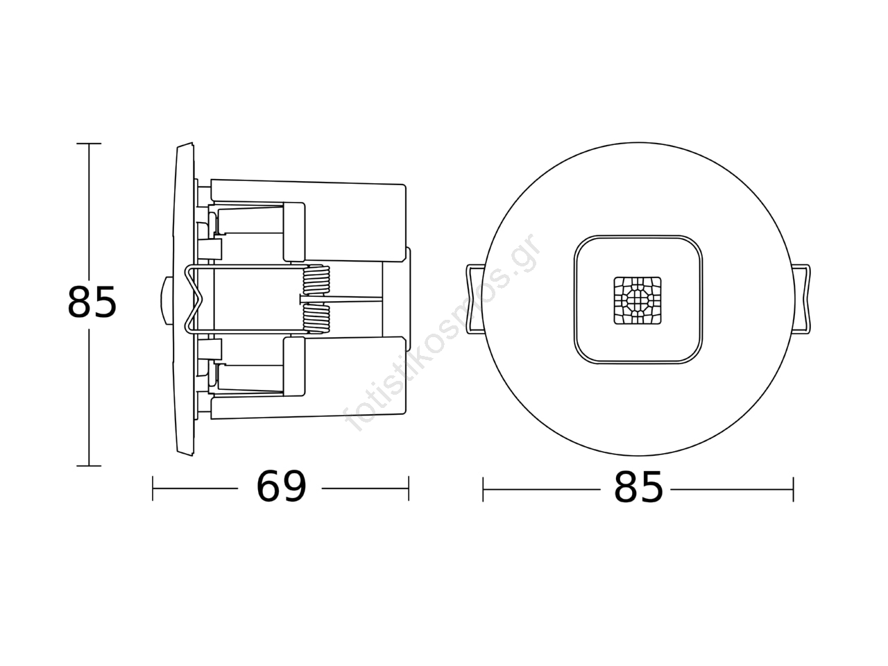 • Τετράγωνη ζώνη ανίχνευσης παρουσίας σε επιφάνεια 16 m².