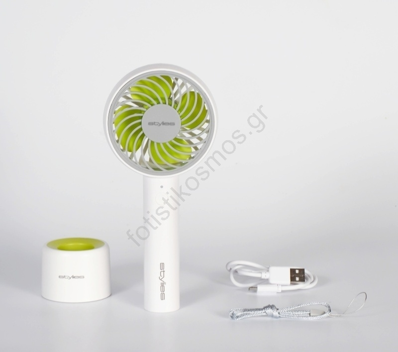 Stylies - Επαναφορτιζόμενος φορητός ανεμιστήρας χειρός LACERTA 4W/5V 2500 mAh λευκός | Fotisti kosmo