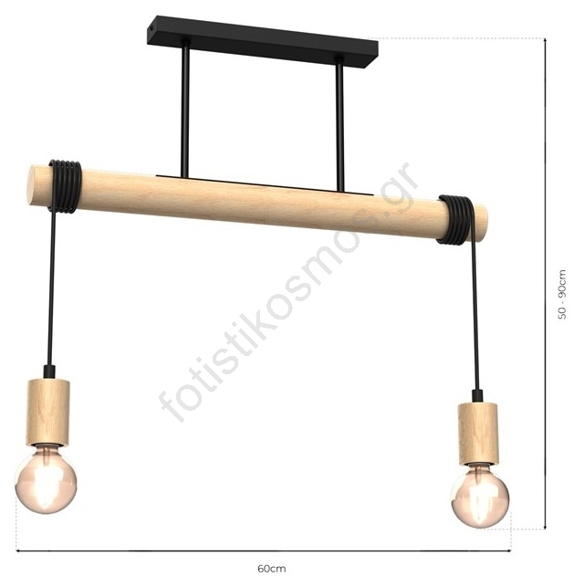 Πλαφονιέρα οροφής πολύφωτο VIGA 2xE27/60W/230V ξύλο | Fotisti kosmos