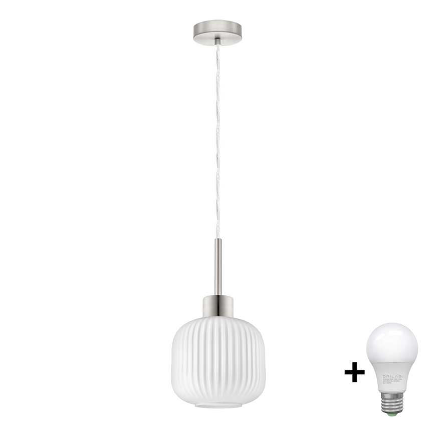 LED κρεμαστό φωτιστικό HARMA σε καλώδιο, 1xE27/60W/230V, Ø 20 cm, ματ χρώμιο/λευκό