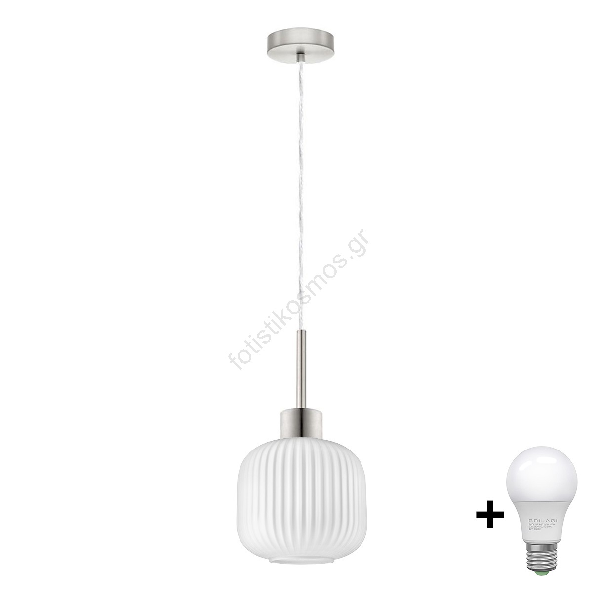 LED κρεμαστό φωτιστικό HARMA σε καλώδιο, 1xE27/60W/230V, Ø 20 cm, ματ χρώμιο/λευκό | Fotisti kosmos
