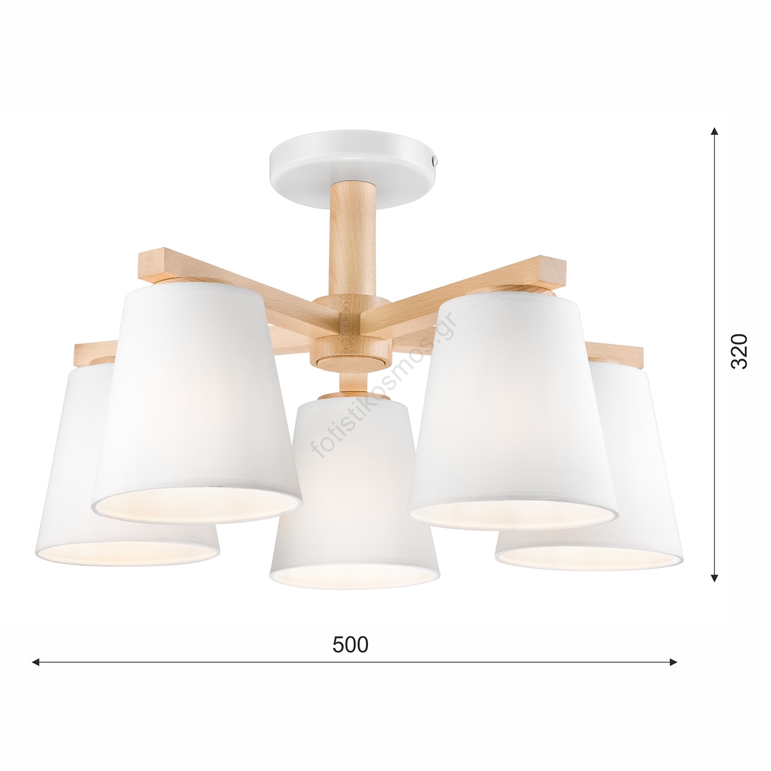 Πλαφονιέρα ELLIE 5xE27/60W/230V λευκό/οξιά | Fotisti kosmos