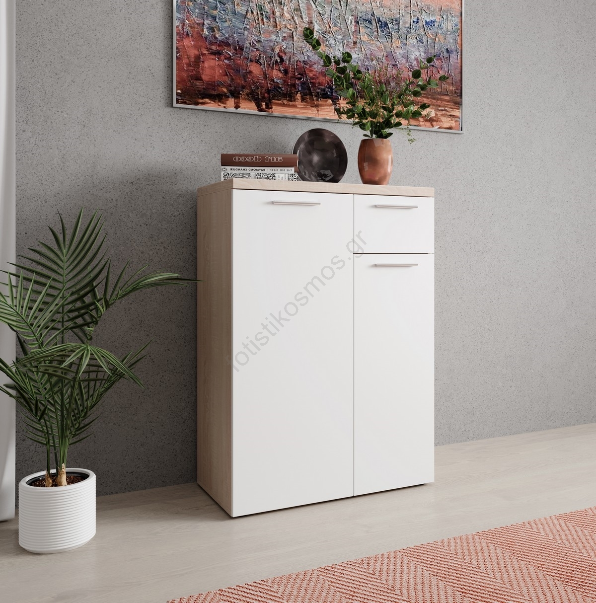• Η επάνω επιφάνεια είναι αρκετά ευρύχωρη για να τοποθετήσετε διακοσμητικά, ηλεκτρονικές συσκευές ή άλλα απαραίτητα αντικείμενα.