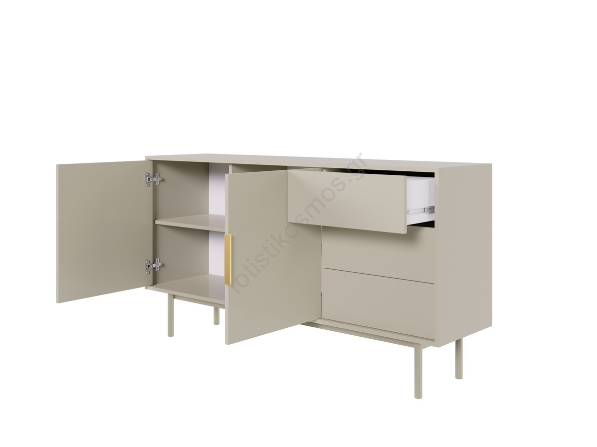 • Διαθέτει δύο πόρτες στην αριστερή πλευρά και τρία συρτάρια στη δεξιά πλευρά, για πρακτική και οργανωμένη αποθήκευση.