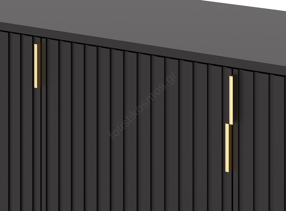 • Διαθέτει έξι ράφια και τρία πορτάκια με κάθετο ραβδωτό φινίρισμα.