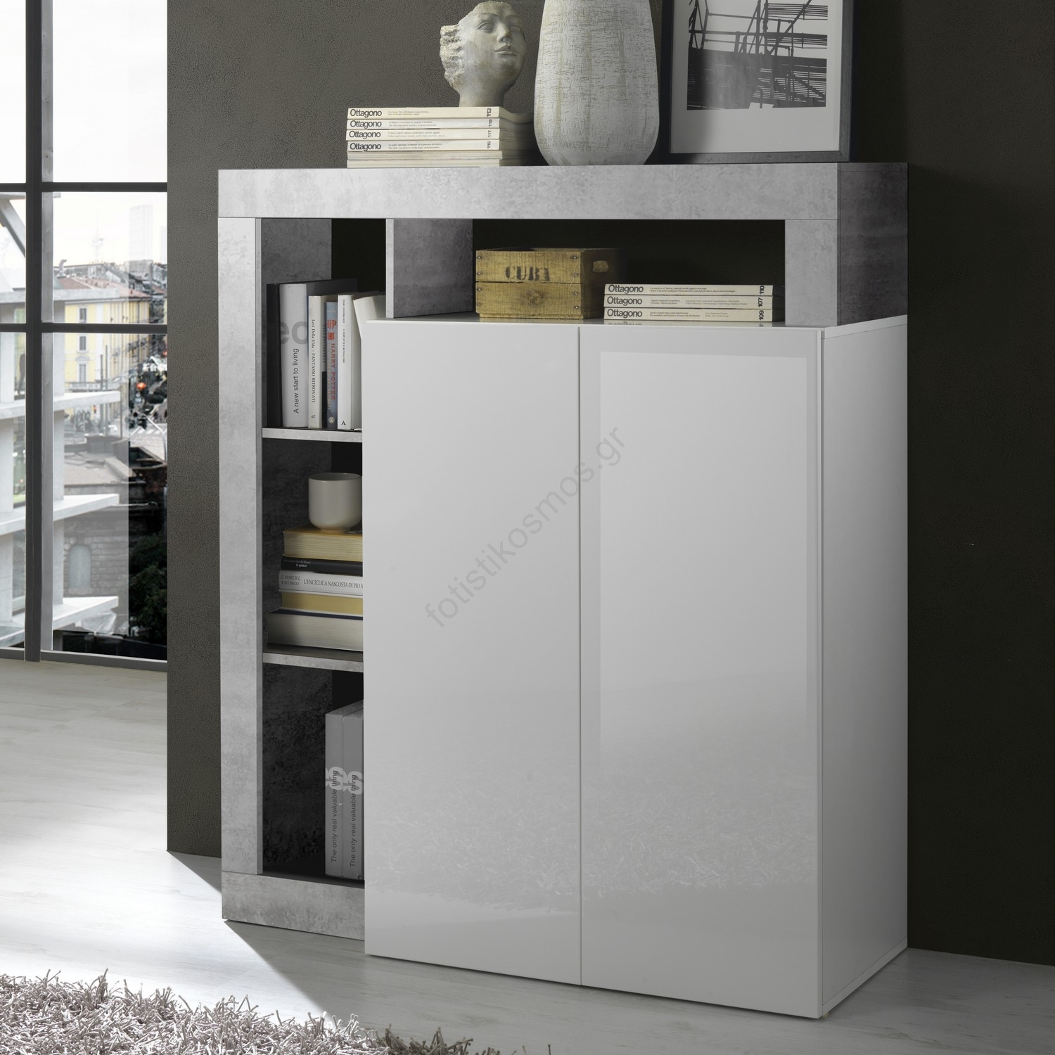 Συρταριέρα LENOR λευκή/γκρι με όψη τσιμέντου