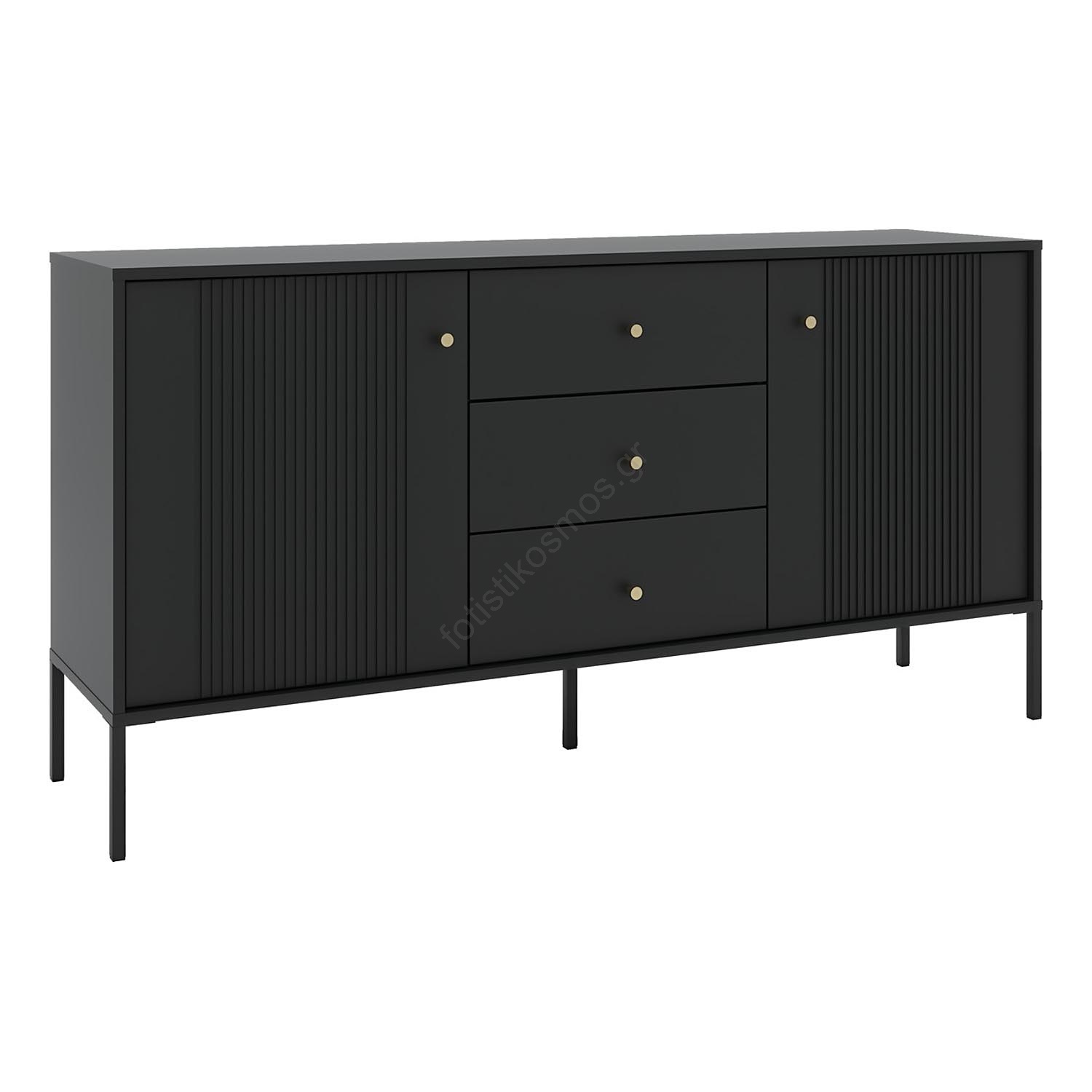 • Διαθέτει τρία συρτάρια στο κέντρο και δύο ντουλάπια με πόρτες με κάθετες ραβδώσεις.