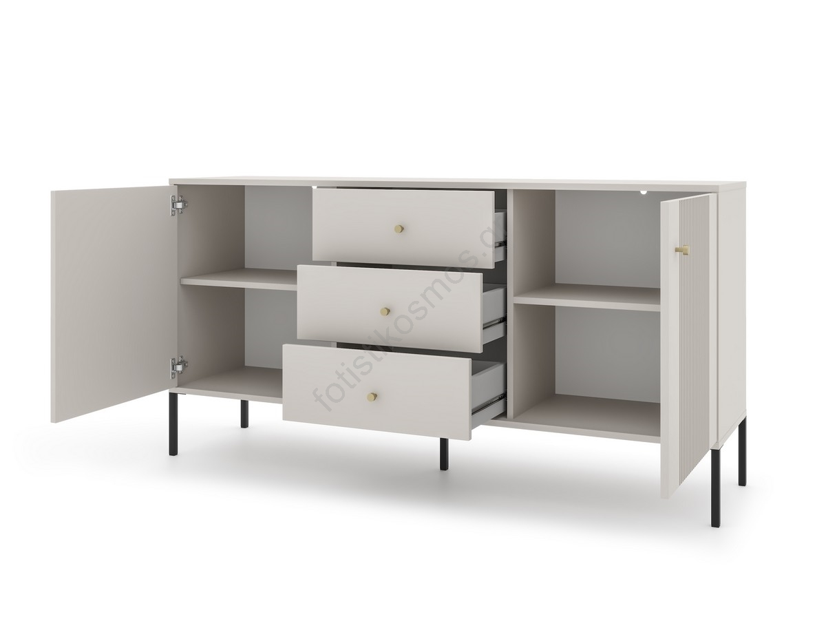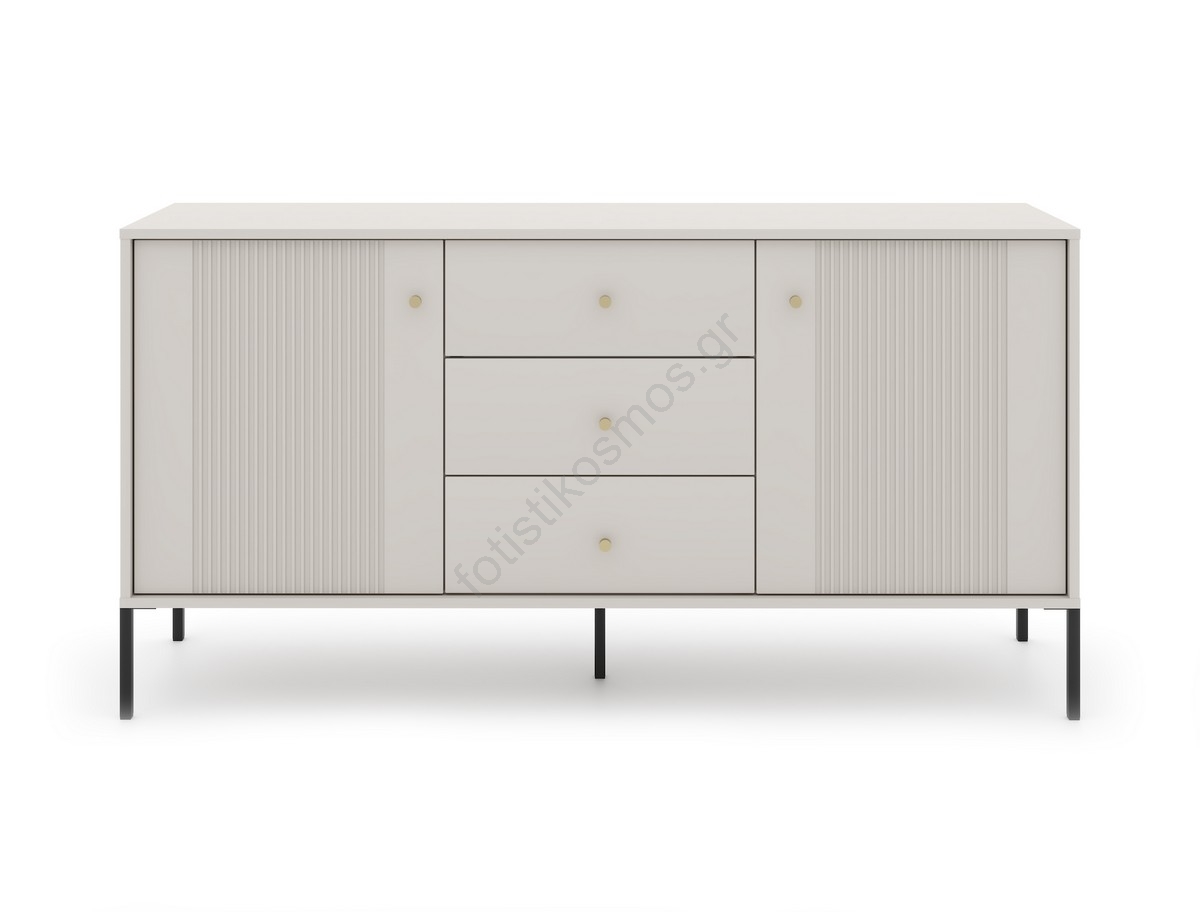 • Διαθέτει τρία συρτάρια στο κέντρο και δύο ντουλάπια με πόρτες με κάθετο νεύρωμα.
