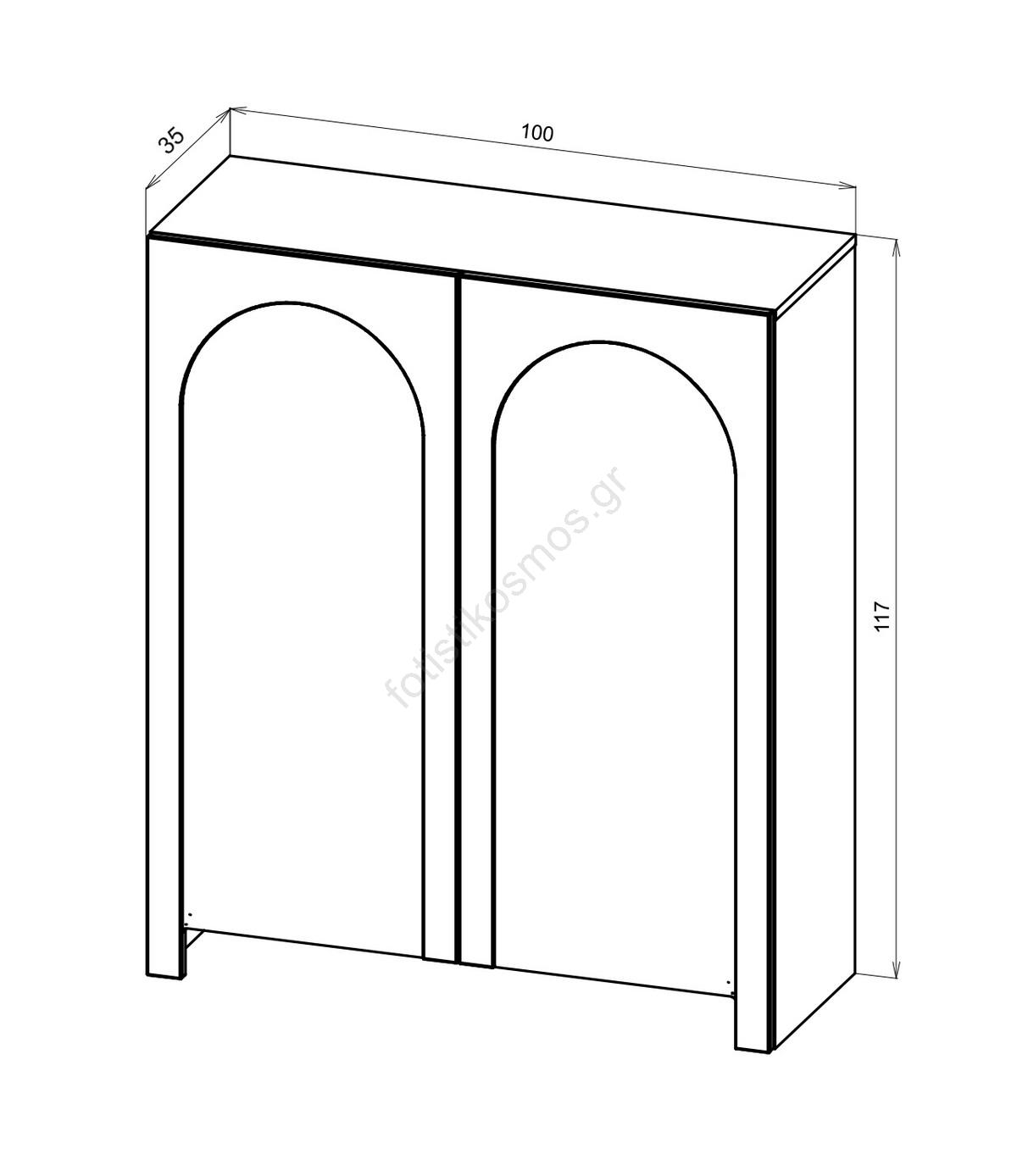 • Διαθέτει δύο πόρτες, η καθεμία διακοσμημένη με λεπτό αψιδωτό μοτίβο για ένα εκλεπτυσμένο οπτικό αποτέλεσμα.
