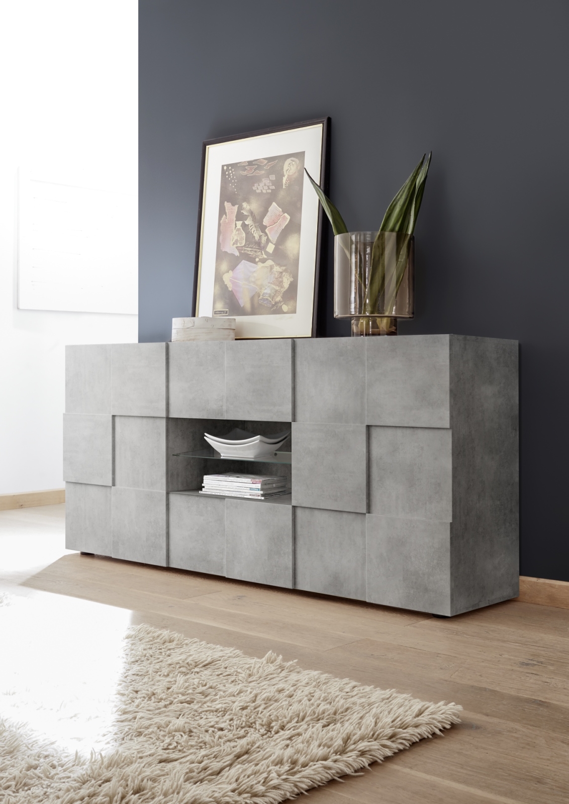 • Συρταριέρα SERIAN σε γκρι χρώμα με εφέ μπετόν