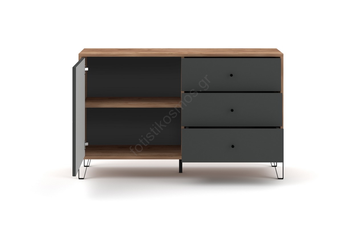 • Διαθέτει μία πόρτα στην αριστερή πλευρά και τρία συρτάρια στη δεξιά πλευρά, για οργανωμένη και πρακτική αποθήκευση αντικειμένων.