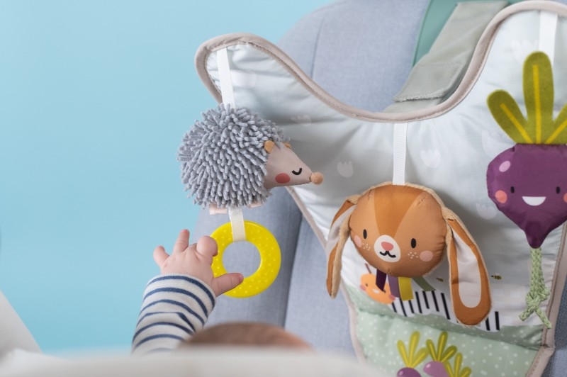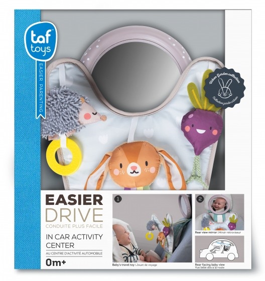 • Παιδικό τραπεζάκι με κρεμαστά υφασμάτινα παιχνίδια και όμορφες εικονογραφήσεις από τη ζωή στον κήπο, που διασκεδάζει τα παιδιά κατά τη διάρκεια της διαδρομής με το αυτοκίνητο.