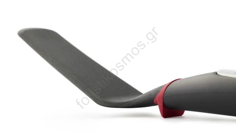• Στη λαβή υπάρχει κόκκινος σιλικονούχος δακτύλιος, που επιτρέπει να ακουμπάτε τη σπάτουλα στην άκρη του ζεστού τηγανιού ή κατσαρόλας.