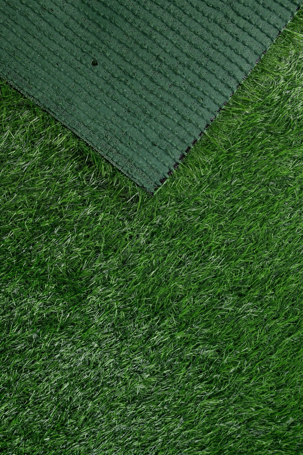 • Η κάτω στρώση είναι κατασκευασμένη από μείγμα λάτεξ, το οποίο βοηθά στη συγκράτηση των ινών και στη διατήρηση του σχήματος του χλοοτάπητα.