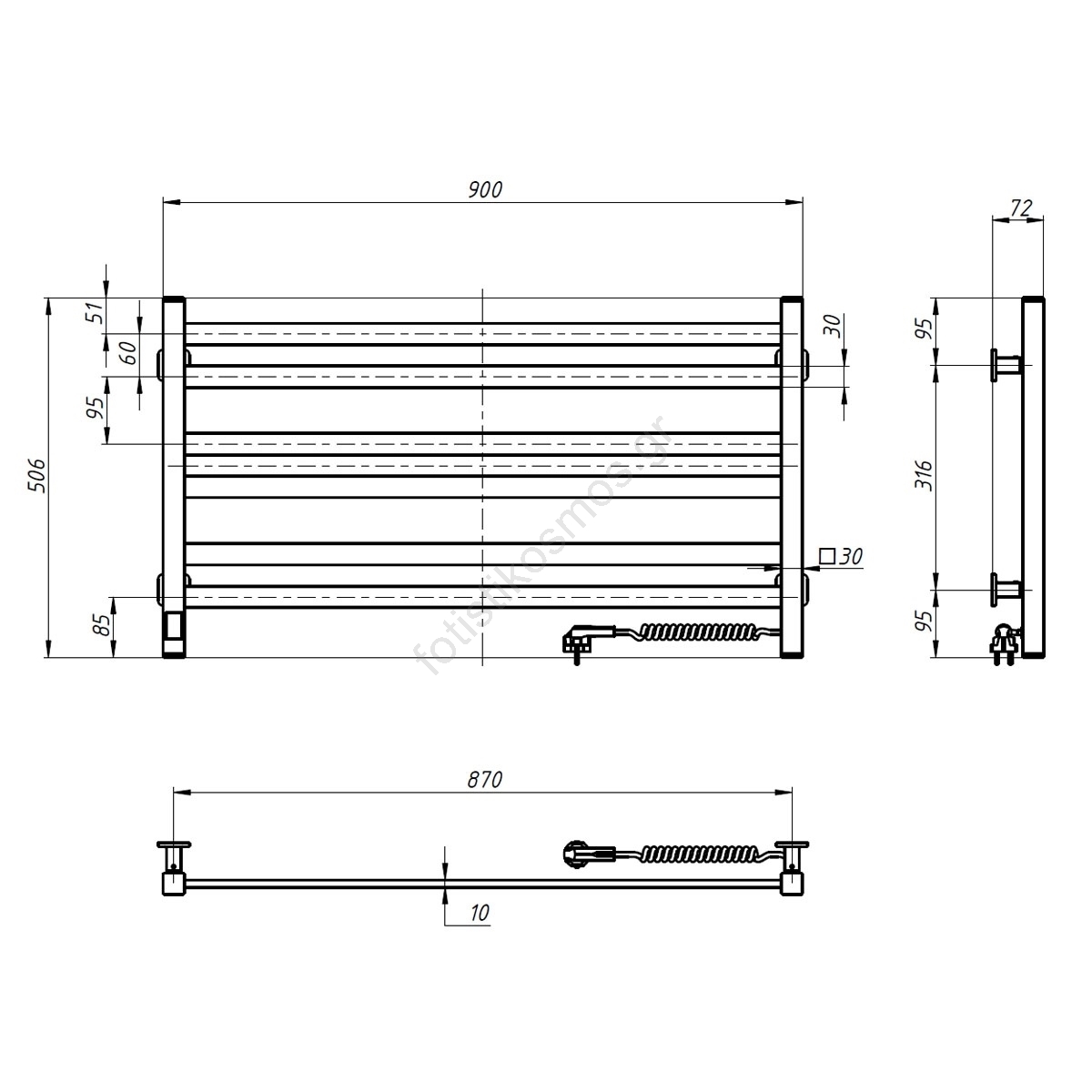 Ηλεκτρική πετσετοκρεμάστρα με θερμοστάτη AVANGARD 181W 50x90 εκ. λευκή, δεξιά