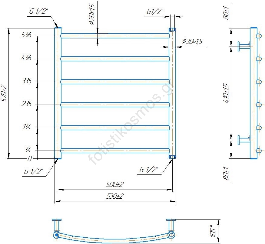 Θερμαντικό σώμα-σκάλα για μπάνιο INOX CLASSIC 122W/230V 57x53 cm ανοξείδωτο/λευκό