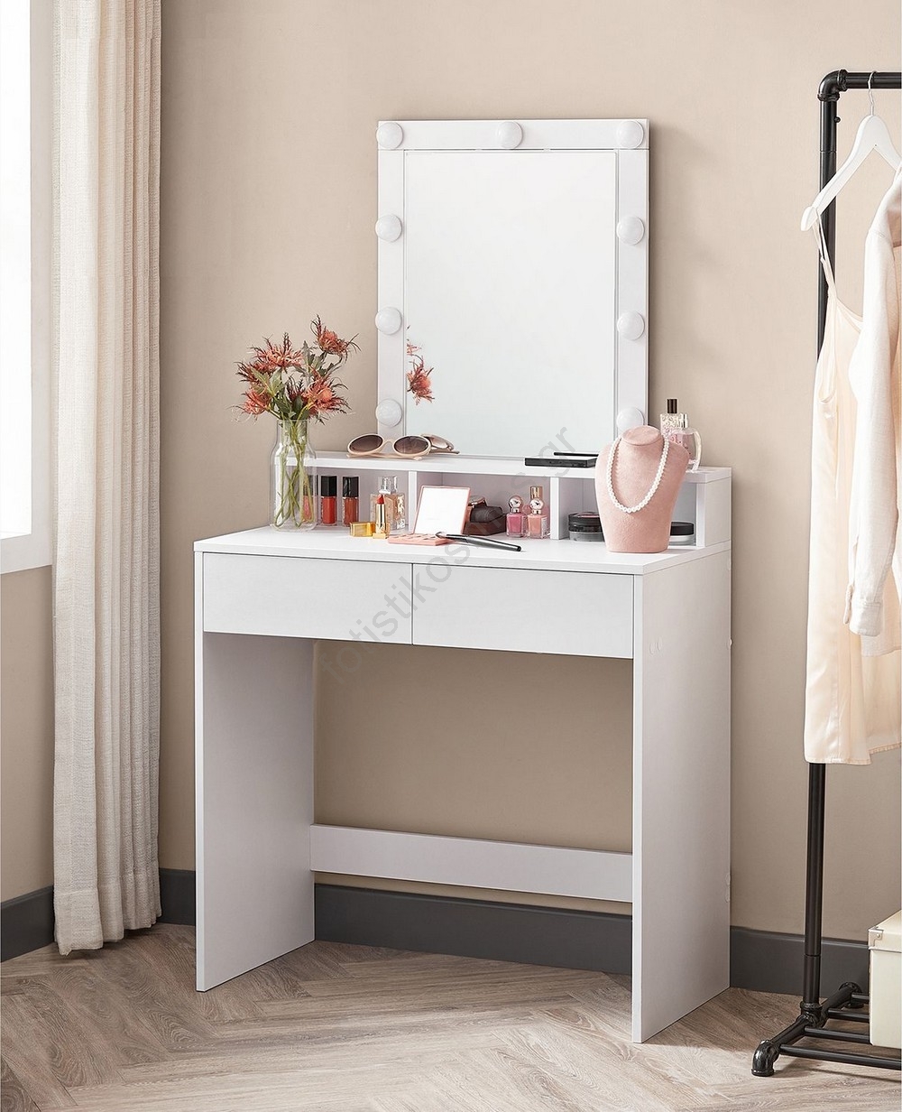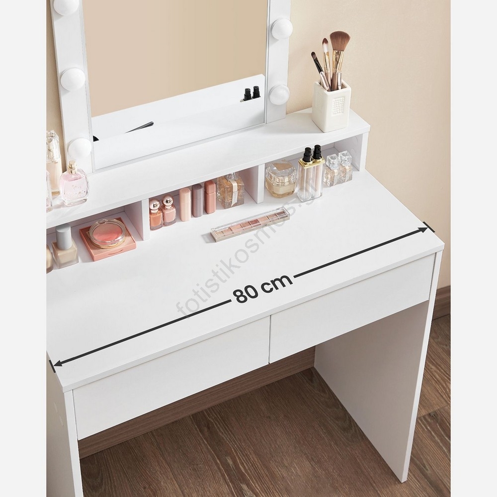 • 2 συρτάρια και ράφια διασφαλίζουν ότι τα καλλυντικά και το μακιγιάζ σας θα είναι πάντα εύκολα προσβάσιμα.