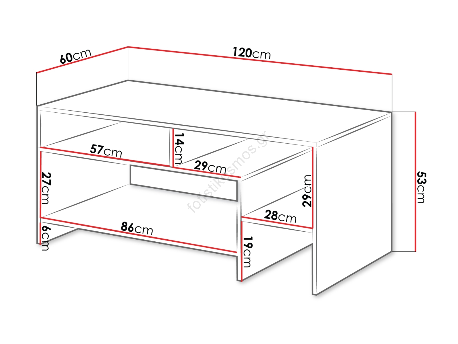 • Τραπεζάκι σαλονιού με ευρύχωρη επάνω επιφάνεια και πρακτικά ράφια για τα αντικείμενα που θέλετε να έχετε πάντα κοντά.