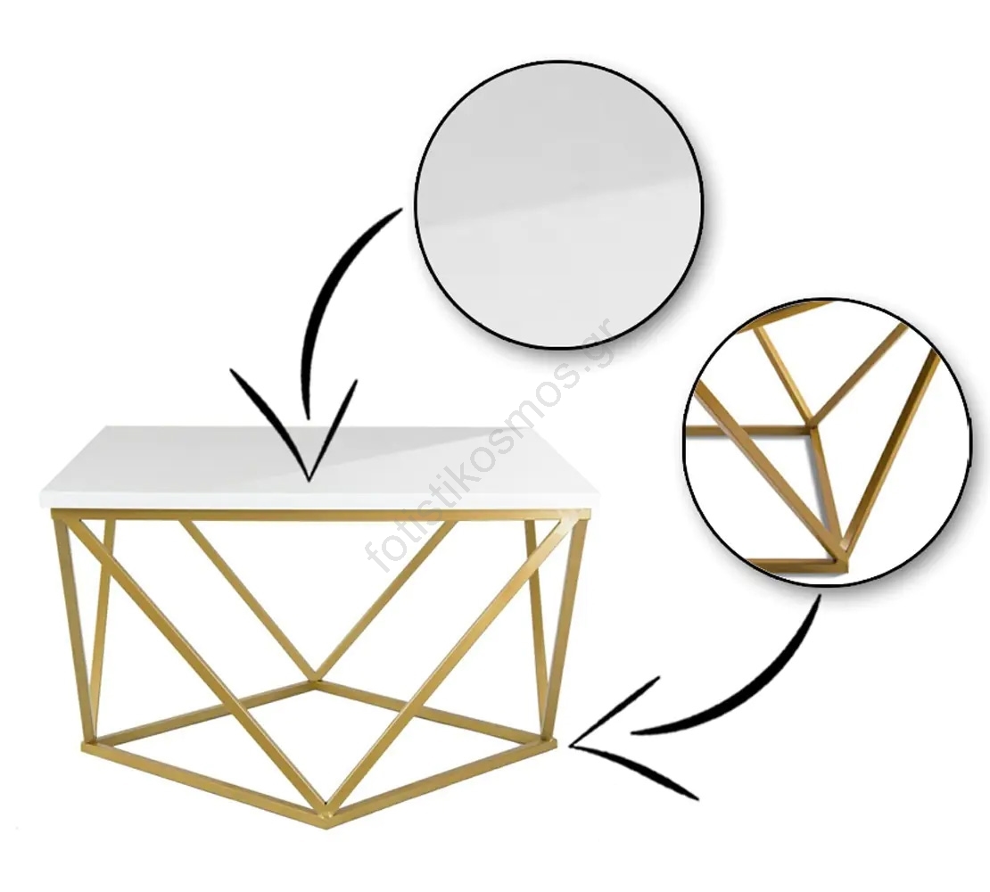 Τραπεζάκι σαλονιού CURVED 62x62 cm χρυσό/λευκό | Fotisti kosmos