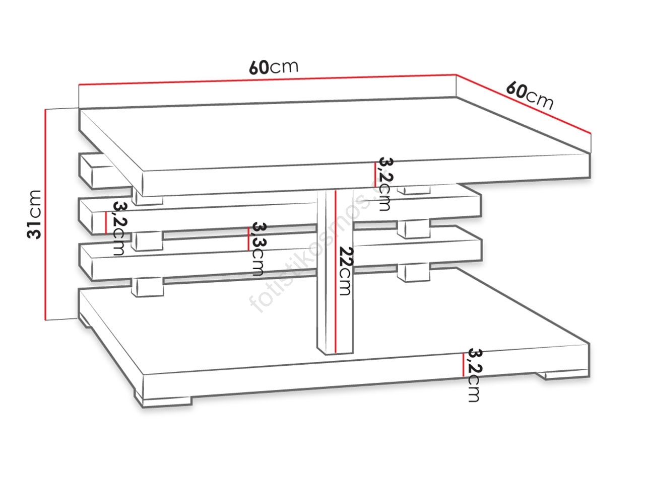 • Κατασκευασμένο από μοριοσανίδα πάχους 32 mm.