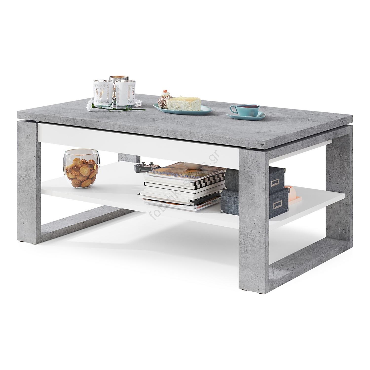 Τραπέζι σαλονιού NEA με ανασηκούμενη επιφάνεια και ράφι, γκρι μπετόν/λευκό