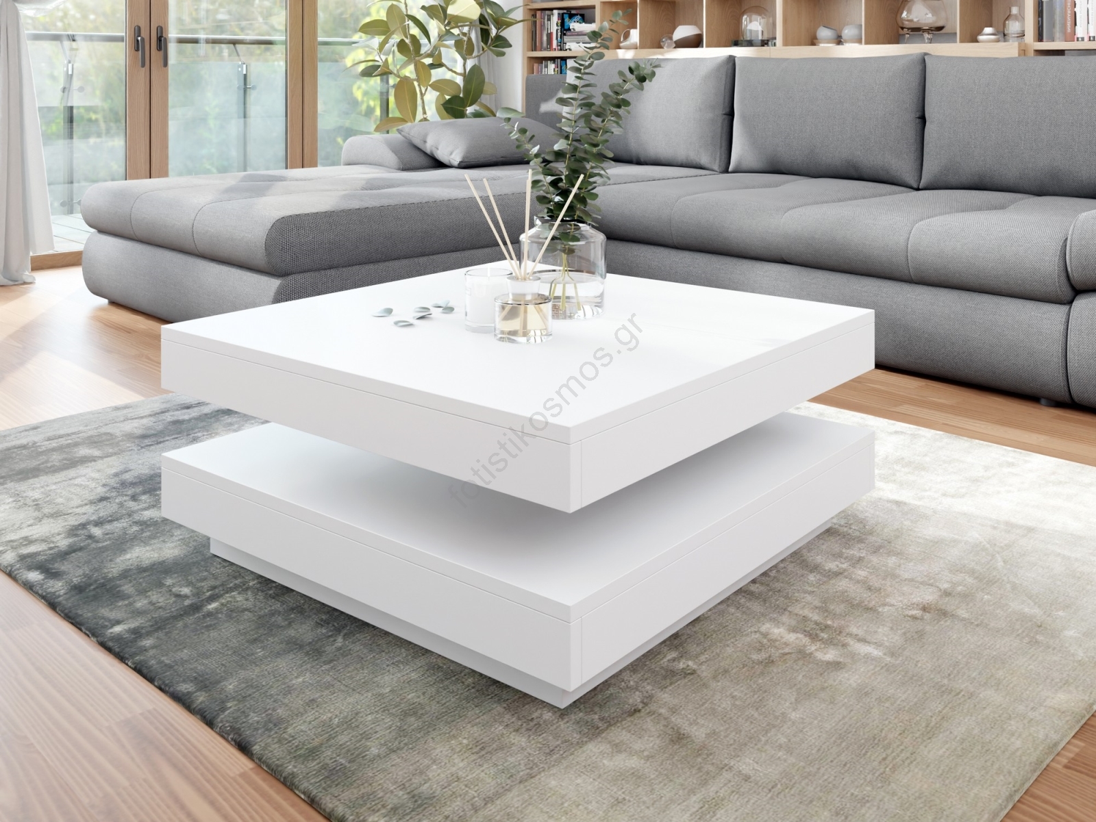 • Η κάτω επιφάνεια είναι σταθερή βάση, ενώ η επάνω επιφάνεια του τραπεζιού επιτρέπει περιστροφή 360 μοιρών.