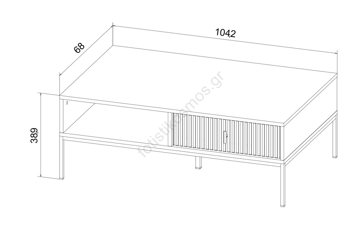 • Διαθέτει ένα ανοιχτό ράφι και δύο συρτάρια με κάθετες ραβδώσεις για ένα κομψό οπτικό αποτέλεσμα.