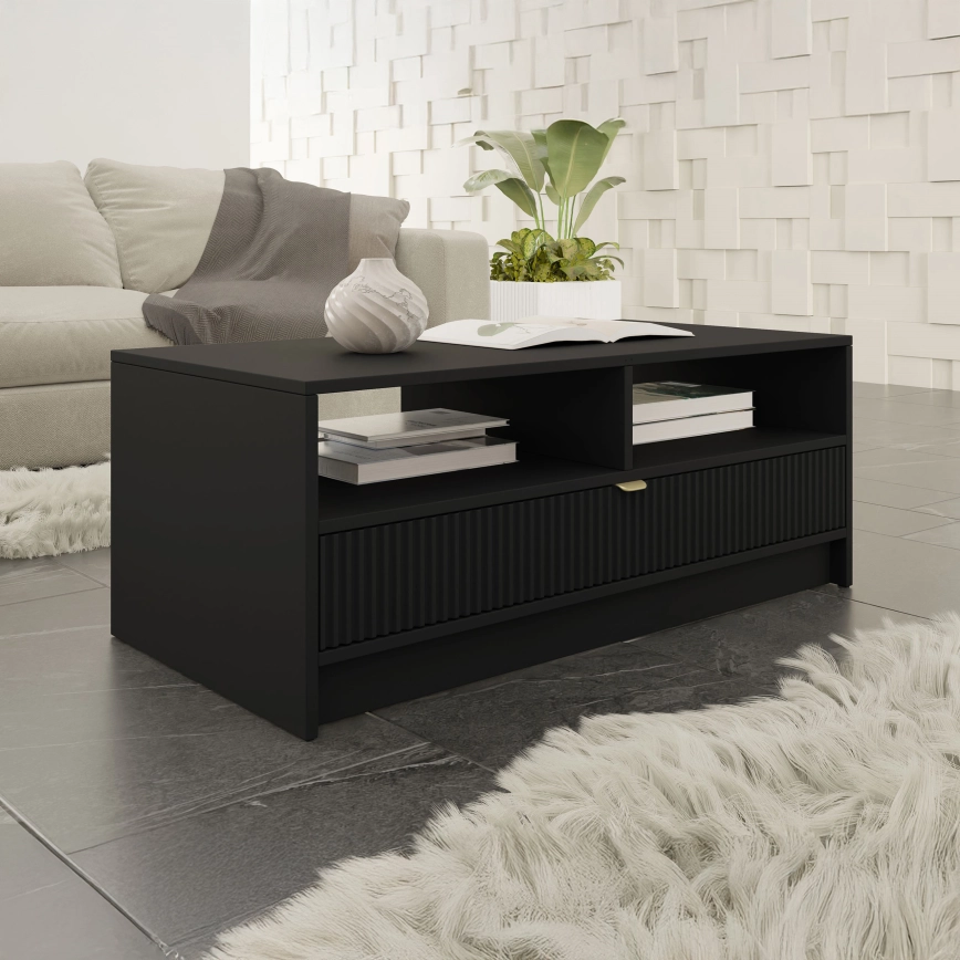 • Τραπεζάκι σαλονιού με πρακτικό συρτάρι και ανοιχτό ράφι για τα αντικείμενα που θέλετε να έχετε πάντα στη διάθεσή σας.